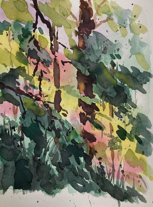 Forest Dawn wc, 8 x 12, matted 16 x 12